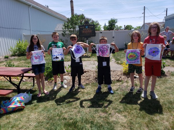 Until the summer turn too hot to be outside the summer activity days were held at the mini park. Thank you garden club ladies for the library to use.